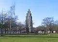 Coventry War Memorial stands at the centre of War Memorial Park, to the south of the city of Coventry in England. The memorial is a tapering tower 87 feet (27 m) high, completed in 1927. It was restored in 2011, and designated as a Grade II* listed building in January 2013. At the same time, the park was itself listed at Grade II, and the gates and gate posts at the park's main entrance were separately Grade II listed.