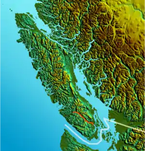 The Cowichan River /ˈkoʊ.ɪtʃən/ is a moderately sized river on Vancouver Island, in British Columbia, Canada. It originates in Cowichan Lake, flowing east towards its end at Cowichan Bay. Its drainage basin is 795 square kilometres (307 sq mi) in size.[1]