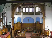 The present main building was opened in December 1904. It is a substantial brick building with a spire and ornaments both inside and outside. A two-manual plus pedals pipe organ adorns one side.