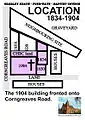 Situation of buildings in the 19th century showing the original 1834 building and the 1850 extension.