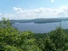 A peninsula jutting into the lake from the north contains Bear Mountain and state camping facilities. One end of the Bear Mountain Trail leaves from campsite loop 3. The other end, a trail head with plenty of good parking, is located much closer to the campground entrance. The hike is fairly rigorous, but from start to the top it is only about 1-mile (1.6 km). The lookout spot near the top provides a great view to the south and south west, mainly of Joe Indian and Buck islands.