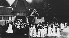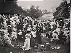 | The opening of the garden fete in the tennis pavilion (now the Rotunda) in the grounds of Cranbrook, 1903. |