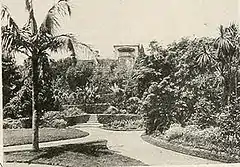 "The terrace in front which shuts out the high road is a very happy arrangement, and thanks to the well-stocked glass and bush houses a continuous supply of flowering plants is maintained. The Gardens and grounds are in fine order, and the view from the water side is charming."