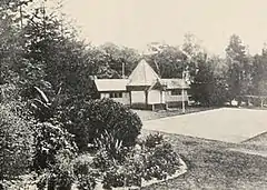 While James and Emily White owned Cranbrook the gardens and grounds were also developed. Horbury Hunt built a tennis pavilion (see photo below left and also below in section on garden fete) which still exists today. It is the Rotunda at Cranbrook School.