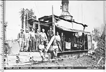 The location was formerly a company town for sawmill workers of the Little River Redwood Company, organized in 1893 by owners in Ottawa and western New York. Company headquarters were in Tonawanda. The California sawmill commenced operations in 1908.[3] The post office opened in 1909 was named for property owner Conrad Bulwinkle. In 1922 the community was renamed for Little River Redwood Company president Levi Crannell.[2] The town was served by the Trinidad extension of the Northwestern Pacific Railroad from 1911 to 1933.[4] A 1925 map of Crannell presents the various saw and planning mills, as well as dams and blockades on the Little River for logging transport. The town itself featured tenement housing, offices, and a General Store.[5]