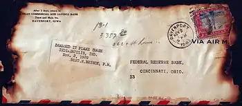 A crash cover is a philatelic term for a type of cover (including the terms air accident cover, interrupted flight cover, wreck cover), meaning an envelope or package that has been recovered from a air crash, train wreck, shipwreck or other accident. Crash covers are a type of interrupted mail.