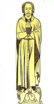 - John Sell Cotman; Samuel Rush Meyrick (1838). Engravings of Sepulchral Brasses in Norfolk Tending to Illustrate the Ecclesiastical, Military, and Civil Costume as Well as to Preserve Memorials of Ancient Families in that County. Vol. 2. Bohn. p. 4.