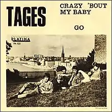 "Crazy 'Bout My Baby" was eventually released on Tages 2 through Platina Records on 4 August 1966, approximately during the same time "In My Dreams" peaked on the charts.[15][16] Platina would then demand a follow up to "In My Dreams" when it dropped off the chart in mid-September, and the group chose "Crazy 'Bout My Baby" as the follow up.[9] The single was released on October 21, 1966, backed with the group's original composition "Go" by Platina Records.[10][9] The single first entered Kvällstoppen on November 15, at a position of 19, before going to number 18 the following week.[17] On December 29, the single peaked at number 16 before dropping off the chart completely.[17] It did not even enter Tio i Topp, being voted off at a position of number 15.[18]