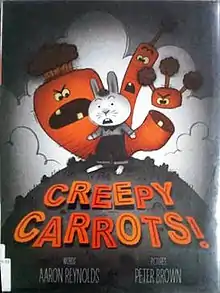 Creepy Carrots! is a 40-page children 's picture book written by Aaron Reynolds and illustrated by Peter Brown. It was published on August 21, 2012, by Simon & Schuster Books for Young Readers.[1] In 2013 a 10-minute animated film was made by Weston Woods Studios and narrated by James Naughton.