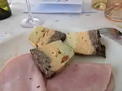 A crespéou (French: [kʁɛs.pe.u]) is a savory Provençal cake made up of omelettes with herbs and vegetables stacked in layers. The dish can be eaten cold, sometimes accompanied with a tomato coulis. The recipe, which appears to be native of Avignon and Haut-Vaucluse (Piolenc and Orange), has become popular throughout the county of Venaissin, the region of Provence, and the countryside around Nice.[1]