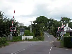 ![]() Level crossing at the site of the former station | |