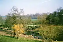The former deer park of the house, known as "Cricket Park", were designed by D.D (David) Davis, a noted horticulturist at the start of the 19th Century,[20] and were later turned into a wildlife park. the wildlife park was home to 600 rare and endangered species including lemurs, primates, camels, reptiles and wildfowl.[21] Questions were raised in the UK parliament in 1995 after a rare Asian elephant was euthanised at the park.[22][23] The wildlife park closed in 2009 and most of the larger animals were moved to other zoos around the country. Some of the smaller animals, such as the lemurs, were kept and the park was returned to gardens and lakes, re-opening in mid-2010.[24] The park has since closed again and very little remains of the enclosures or buildings.