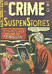 Crime SuspenStories was a bi-monthly anthology crime comic published by EC Comics in the early 1950s. The title first arrived on newsstands with its October/November 1950 issue and ceased publication with its February/March 1955 issue, producing a total of 27 issues. Years after its demise, the title was reprinted in its entirety, and four stories were adapted for television in the HBO's Tales From The Crypt.