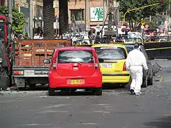 According to Colombia's most influential weekly magazine, Semana, there are over 1,700 assassins working for various groups in the city.[32] As of 2011 urban militias, known as Milicias Populares, of the Revolutionary Armed Forces of Colombia are active in the city and surrounding areas.[33][34] Local civilians and foreigners have been advised by the DAS to take caution due to the risk of planted bombs and kidnappings.[35]