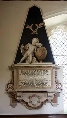 Gascoyne died on 28 December 1761, and was buried on 4 January 1762 in Barking Church, in the north aisle of which is a large monument with an inscription, erected to his memory by his four children.[8] His will, dated 20 December 1761, was proved in the P.C.C. 4 January 1762 (St. Eloy, 13).