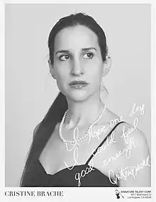 Cristine Brache (born 1984 in Miami) is an American artist, filmmaker, and writer of Puerto Rican and Cuban descent. Her work spans video, sculpture, and poetry. She has since 2012 been exhibited internationally, in Europe, North America, and Australia. Her debut book, Poems, was published by Codette in 2018.[1][2][3]