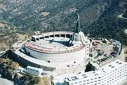 At the foot of the statue of Christ the King, is the modern basilica shaped like a globe. The Sanctuary has the capacity to accommodate a large number of pilgrims who attend all year round, but in particular for the feast of Christ the King, the last Sunday of the liturgical year, during the month of November.