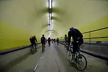 The Critical Mass rides have inspired a number of other bicycle movements, that range from political movements to the "Critical Tits" ride during the yearly Burning Man festival.[22] In Chicago, a movement has grown out of the Critical Mass community to promote winter cycling via the bikewinter campaign.[23] The extensive news coverage of San Francisco's July 1997 ride spawned an international celebration of bicycling, called Bike Summer.[24] Kidical Mass originated in Oregon, and encourages bicycle riding for children and families.[25] The movement gained momentum in North America and Europe and set a record in September 2019, when 1100 riders took part in Dortmund, Germany.[26] Critical Sass was an all-female version of the ride in Baton Rouge, Louisiana, that took place the second Friday of every month. The Tweed Run (along with various other vintage bike rides) is a well dressed mass which takes place annually in a number of cities across the world. Examples of Critical Mass rides for political movements includes the Free Tibet Rides (May 2008): Free Tibet Critical Mass in Columbia, Missouri, "Tibetan Freedom Bike Rally" in San Francisco (Aug 2008), and in "Bike Ride for Tibet" in London (Aug 2008).[27]