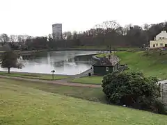 The Old Great Dam was integrated into Crookes Valley Park when it was set out by Sheffield Corporation in the early years of the 20th century. For many years it was used as a boating lake and has been used for fishing. it is fed by a small stream which flows through a culvert into the western corner. The lake is said to be 60 feet (18 m) deep and there are unsubstantiated stories of large Pike and Zander living in the depths. On the south western fringe of the park is the Dam House bar and restaurant, a building of some antiquity. It was built in the 1780s when the Dam was being constructed and originally served as the house of the Water Board's solicitor.[2]