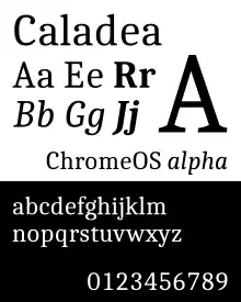 In 2013, Google released an additional Crosextra (Chrome OS Extra) package, featuring Carlito (which matches Microsoft's Calibri) and Caladea (matching Cambria).[8] These two fonts are respectively metric-adjusted versions of Lato[9] and Cambo,[10] both available on Google Fonts.