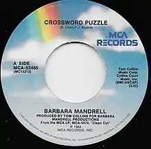 "Crossword Puzzle" was released as a single on MCA Records in September 1984. It was backed on the B-side by the song "If It's Not One Thing It's Another". The track was issued by the label as a seven inch vinyl single.[4] The single spent 20 weeks on America's Billboard country songs chart, peaking at number 11 by December 1984.[5] In Canada, the single climbed to into the top ten of the RPM country chart.[6] The song was spawned from Mandrell's 1984 studio album titled Clean Cut.[7]