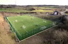 In 2012 a state of the art £1 million pound sports facility was opened in the village.[18] Spearheaded by local residents and part financed by North Lanarkshire Council,[19] the facility is home to a full size 3G football pitch with enclosure and stadium quality floodlighting, a 2 floor community pavilion with changing rooms and meeting area, and additional goalposts and line markings to allow conversion to 3 smaller football pitches when needed.
