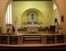 Croy has a Roman Catholic primary school (Holy Cross Primary)[9] and a large Catholic church (Holy Cross Church) that services a substantial congregation from all over the local area. The church has been established for over 100 years and has some impressive architectural features; the church bells are rung prior to each service and can be heard throughout the village.[10][11] Another impressive architectural feature is the Croy Railway Viaduct (known locally as the four arches). Built in the mid-1800s, the viaduct can be accessed via a heritage path running alongside Croy station. The path was redeveloped with the Croy station improvements and is now well signposted and more easily accessible. In 2013 it was announced that Croy Quarry, near the World Heritage Site of the Antonine Wall, was to close. Aggregate Industries lost their license to extract minerals at the end of 2017.[12]