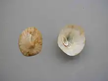 Crucibulum striatum, common name the striate cup-and -saucer, is a species of sea snail, a marine gastropod mollusk in the family Calyptraeidae, the slipper snails or slipper limpets, cup-and-saucer snails, and Chinese hat snails.[1]