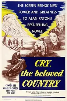 Cry, the Beloved Country is a 1951 British drama film directed by Zoltán Korda. Based on the novel of the same name by Alan Paton, it stars Canada Lee, Sidney Poitier, and Charles Carson. This film was Canada Lee's last film.