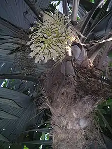 Cryosophila is a genus of medium-sized, single-stemmed (or rarely multi-stemmed) palms[1]: 6 with fan-shaped (or palmate) leaves and spiny stems.[2]: 39–41 The stems range in height from 0.5 to 15 metres (1.6 to 49.2 ft), with diameters between 4 to 20 centimetres (1.6 to 7.9 in).[1]: 6 Plants have between five and 35 leaves with elongated petioles. The leaves are often whitish-grey on the lower surface. The whitish flowers are bisexual with six stamens and three carpels. The fruit are white and smooth, with a single seed.[2]: 39–41