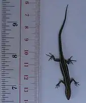 Cryptoblepharus virgatus, also commonly known as striped snake-eyed skink, cream-striped shinning-skink,[2] wall skink,[3] fence skink or snake-eyed skink is a skink commonly found in southern and eastern Australia.[4] It is an active little lizard, and if threatened will often play dead to confuse the attacker.