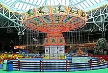 The park was opened on February 15, 1990. In 1998 the Park was purchased by Cadillac Fairview.[2] The Crystal Palace was considered to be one of the largest amusements that indoors in the Canadian Provinces. This amusement park was also in the same building as Cineplex Cinemas, the Chapters bookstore, the Starbucks Café and the Ramada Plaza Hotel. This amusement park included 14 rides and an arcade. This amusement park was located on 499 Paul Street Dieppe, New Brunswick, Canada.[3] In 2015 the Bullet roller coaster was relocated to the Shining Waters amusement park in Cavendish, Prince Edward Island.[4] Several other rides were relocated to Moncton's Magic Mountain water park.[5]