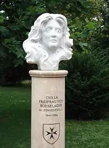 Csilla von Boeselager (May 17, 1941 in Budapest – February 23, 1994, in Arnsberg-Voßwinkel) was a Baroness who founded the Hungarian Maltese Charity Organisation in Germany (German: Ungarischer Malteser Caritas Dienst), and initiated the foundation of the Magyar Máltai Szeretetszolgálat (MMSz) in Hungary. She was a Dame of Malta.