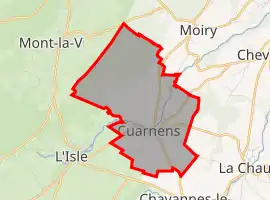 Cuarnens has an area, as of 2009, of 7.14 square kilometers (2.76 sq mi). Of this area, 4.59 km2 (1.77 sq mi) or 64.3% is used for agricultural purposes, while 2.16 km2 (0.83 sq mi) or 30.3% is forested. Of the rest of the land, 0.33 km2 (0.13 sq mi) or 4.6% is settled (buildings or roads), 0.01 km2 (2.5 acres) or 0.1% is either rivers or lakes.[4]