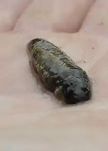 As one might expect, the tiny black sea cucumber is small, growing to a length of 38 millimetres (1.5 in). It is black above and a somewhat lighter gray on its underside.[1]