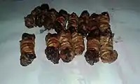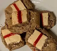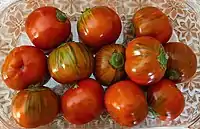 Peperone crusco, a variety of dried bell pepper, is a key element of the regional cooking, so much to be labeled as "the red gold of Basilicata".[7] It is consumed both as a snack and in the preparation of first courses, second courses and appetizers, such as Pasta con i peperoni cruschi, salt cod Lucana style and acquasale. A very used aromatic element is horseradish, defined by people from Basilicata as "poor man's truffle", historically common on the tables of labourers because of its accessible costs and its wide spreading in the territory.[8] Horseradish is a fundamental ingredient of condiments such as ndruppeche, main courses such as rafanata or by mixing it with bread and potatoes to prepare meatballs, as well as to flavor meat.