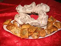 Like other Italian regions, Basilicata also has its own version of Easter bread, which has many variations and different names such as picciddat[57] and piccilatiedd.[58] Other products of the Easter period are ficazzola (f'cazzol), panierino (u' panaridd) and bambolina (a' pipua), typical of Oliveto Lucano.[59]