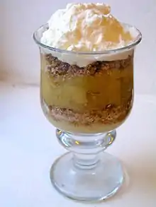 There might also be cold cuts from hams, roast beef, salami, brisket of beef and spiced roulade. Det Kolde Bord usually include accompaniments such as potato salad, scrambled egg and a variety of salads. Desserts like fruit salad and fruit pies, as well as various cheeses may also be served.[30] Around Christmas, the buffet will sometimes include sylte (meat jelly from pork) and other Christmas-related specialties.[31]