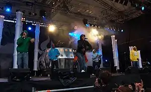 Culcha Candela is a dancehall, hip hop, house and reggae group from Berlin, Germany. Sources say they formed at different times but in the range of 2001-2003.[2][3] Their lyrics range from political issues, such as "Una Cosa" or "Schöne, neue Welt" to party songs, such as "Partybus". The name Culcha Candela can be translated into English roughly as "hot" or "bright" culture.