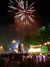 Sarawakians observe a number of holidays and festivals throughout the year.[73] Apart from national Hari Merdeka and Malaysia Day celebrations, the state also celebrates Sarawak Self-government Day on 22 July[74][75] and the State Governor's birthday.[76] Ethnic groups also celebrate their own festivals. The open house tradition allows other ethnic groups to join in the celebrations.[77][78][79] Sarawak is the only state in Malaysia to declare the Gawai Dayak celebration a public holiday.[80] It is also the only state in Malaysia that does not gazette the Deepavali celebration as a public holiday.[81] Religious groups are free to hold processions in major towns and cities during festivals.[82] Sarawak and Sabah are the only two states in Malaysia that declare Good Friday a public holiday.[83] The Kuching Festival is a month-long celebration that is held every August to commemorate its elevation to city status in 1988.[84] Miri City Day is held in conjunction with Miri May Fest every year.[85][86]