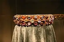 Cunigunde traveled with her husband to Rome for his coronation as Holy Roman Emperor ("Romanorum Imperator") as was the tradition for the King of Germany, and was crowned as Holy Roman Empress[16] with him on 14 February 1014 in St. Peter's Basilica, Rome, receiving together with Henry the Imperial Crown from the hands of Pope Benedict VIII. During her reign she suffered from a grave illness and made a vow that if she were to regain her health, she would found a Benedictine monastery at Kassel. Upon her recovery, she kept her oath and work began on the building;[8] however, Henry died in 1024 before it was finished. Upon his death, Cunigunde was obliged to assume the office of Regent of the Empire. This she did with her brother, and later handed over the Imperial insignia when Conrad II was elected to succeed her late husband on 8 September 1024.