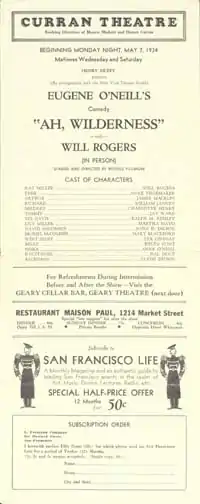 Homer Curran operated another theater with his name for several years prior to building this Curran Theatre; however, the original Curran Theatre had various names before and after this time, whereas this Curran Theatre has never had another name. It opened in February 1922 and was initially a Shubert house. Later, it was a showcase for Theatre Guild presentations. Subsequently, it became closely associated with the Civic Light Opera (CLO), which also operated in Los Angeles. The CLO obtained numerous prestigious bookings and produced their own shows, often with stars as the lead roles.