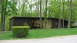 Curtis–Grace House, also known as the Roy and Leona Curtis House and Richard and Connie Grace House, is a historic home located at West Lafayette, Tippecanoe County, Indiana. It was built in 1958, and is a two-story, banked, post-and-beam Modern Movement style dwelling, with a broad, low-pitched offset gable roof. It is constructed of concrete block, redwood, natural stone, and plate glass. The overall dimensions are approximately 82 feet by 23 feet. The surrounding landscaped property is a contributing site.[2]: 3