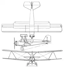 The Model 54 was a conventional biplane design with a highly streamlined fuselage similar in outline to the Curtiss Eagle, but of considerably smaller proportions. The wings were fitted with a variety of high-lift devices, including automatic leading edge slots on the upper wing, flaps that extended along the entire span of the upper wing, and "floating" ailerons on the lower wing that, in the absence of pilot input, automatically adjusted themselves parallel to the airflow over the wing. The combination of these devices gave the Tanager a stall speed of just 31 mph (50 km/h) and allowed it to land in only 90 ft (27 m).[1]
