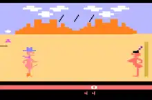 Custer's Revenge (aka Mystique Presents Swedish Erotica: Custer's Revenge) is an adult action game published by American Multiple Industries for the Atari 2600, first released in November 1982.[1] The game gained notoriety owing to its goal of raping a Native American woman.[2]