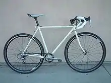 A cyclo-cross bike or cyclo-cross bicycle (abbreviated CX Bike or CXB) is a bicycle specifically designed for the rigors of a cyclo-cross race.[1] Cyclo-cross bicycles roughly resemble the racing bicycles used in road racing. The major differences between the two are the frame geometry, and the wider clearances that cyclo-cross bikes have for their larger tires and mud and other debris that they accumulate.