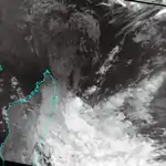 The South Indian convergence zone spawned a circulation that organized into a tropical depression in the Mozambique Channel on January 9. It gradually intensified while moving to the southwest, developing spiral rainbands. On January 11, Elinah passed between Anjouan and Mohéli in the Comoros archipelago. The next day, JTWC upgraded the storm to the equivalent of a minimal hurricane, although land interaction with Mozambique weakened Elinah. After it turned to the south and moved away from the coast, the storm re-intensified, and MFR estimated Elinah reached peak winds of 115 km/h (70 mph) on January 14. Subsequently, the convergence zone caused the storm to weaken, ultimately absorbing it by January 16.[1][13]