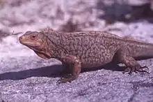The San Salvador rock iguana is an endangered species of lizard of the genus Cyclura in the family Iguanidae. First described by Leonhard Stejneger in 1903, it is known commonly in the Bahamas as simply "iguana".[3]
