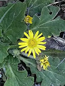 Cymbonotus lawsonianus, commonly known as bears ear,[2] is a species of small shrub in the daisy family from southeastern Australia. It has been described as Arctotis lawsoniana.[3] It is one of three species in the small genus Cymbonotus.[4] It was named in honour of the explorer William Lawson.[5]