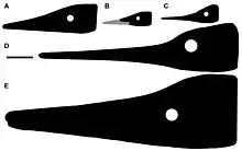 Massare & Callaway (1990) propose that many Triassic ichthyosaurs including Cymbospondylus may have been ambush predators. They argue that the long neck and torso would create drag in water while the laterally-flattened tail lacking the lunate fluke of later ichthyosaur taxa was more suited for an undulating swimming style. In their research they suggest that the elongated flexible bodies of early ichthyosaurs were built to support an undulating swimming style while the powerful tail would provide bursts of speed, both of which they cite as being possible adaptations to ambush prey. Massare & Callaway put this in contrast with Jurassic taxa, known for their compact, dolphin-like bodies adapted for more continuous swimming favorable to pursuit predators.[10] A strikinly similar bauplan was later obtained by two other large bodied marine amniote groups, mosasaurs and archaeocete whales.